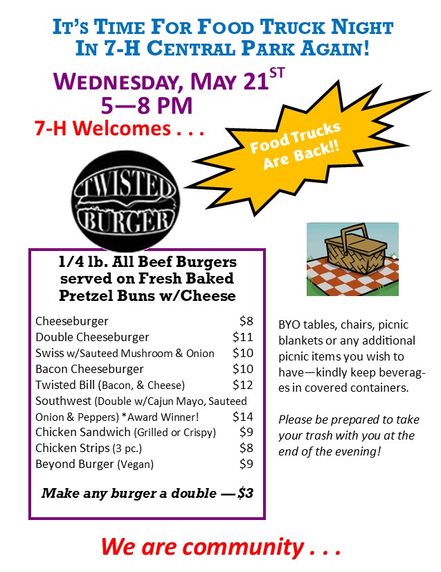 Food Truck are back!! May 21st, 2025 5-8pm Central Park
